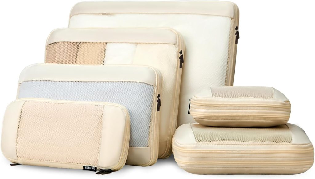 MURISE Organisateur Valise Compressible Lot de 6, Sac Compression Voyage, Rangement Valise Packing Cubes pour les Vacances et les Voyages, Accessoires de Camping, Travel Essentials, Beige – Le détail qui change tout au quotidien