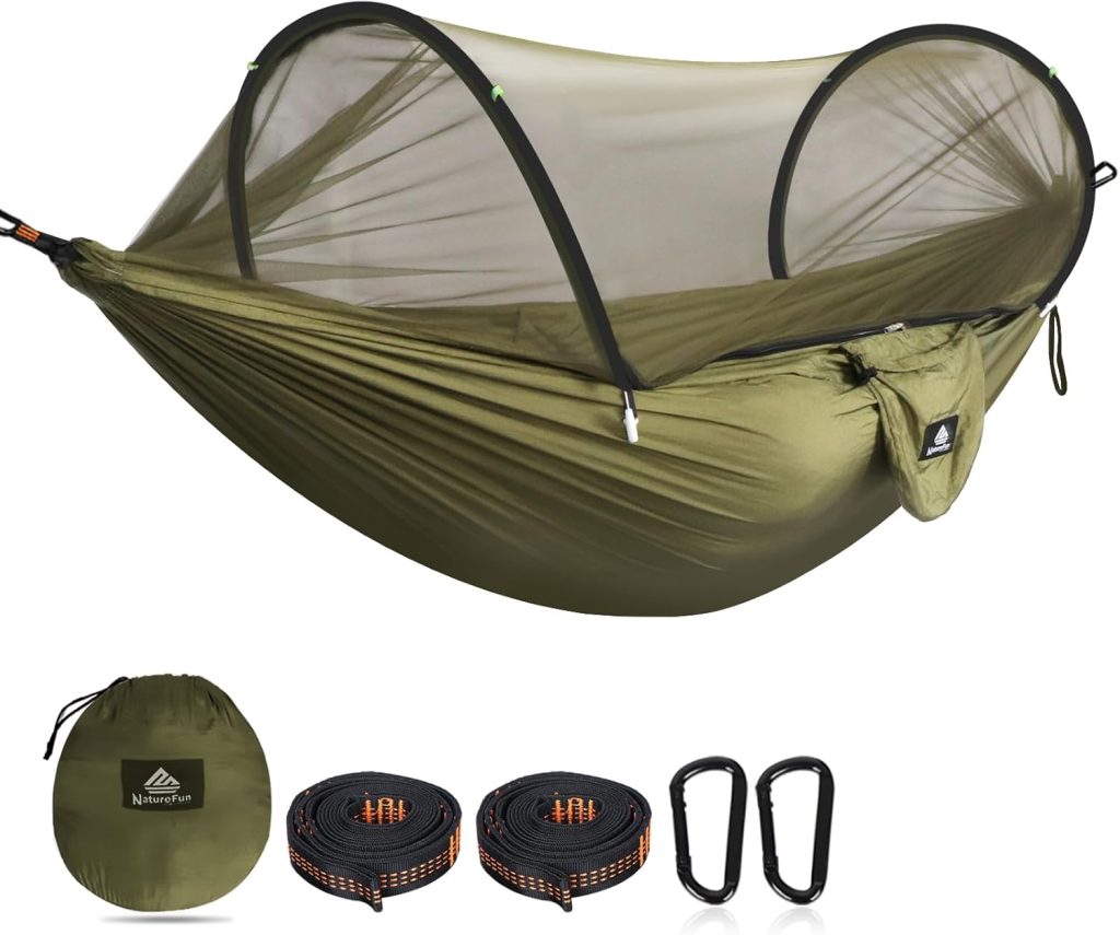 NATUREFUN Hamac de camping ultra-léger Hamac en filet anti-moustiques | Capacité de charge de 300 kg, nylon de parachute respirant à séchage rapide | 2 mousquetons haut de gamme, 2 x élingues en nylon – Le détail qui change tout au quotidien