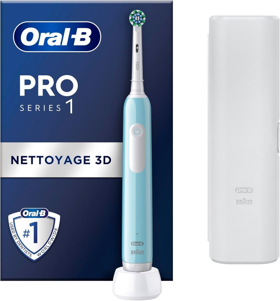 Oral-B Brosse A Dents Electrique Pro 1 Bleue Avec 3 Modes De Nettoyage 3D Dont Douceur, Brossage Avec Des Oscillo-Rotations Et Pulsations, Brossette De Rechange Rond Oral B, Chargeur, Etui – Le détail qui change tout au quotidien