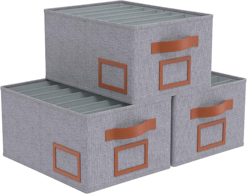 OUTBROS Boite de Rangement Vetement, 3 pcs Grande Armoire Organisateur Tiroir Vetement pour pantalons, T-shirt, avec Poignée et 7 Grilles, Gris – Le détail qui change tout au quotidien