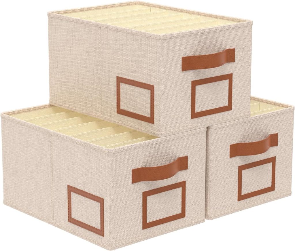 OUTBROS Boite de Rangement Vetement, 3 pièces Grande Armoire Organisateur Tiroir Vetement, Caisse Pliable, pour pantalons, T-shirt, avec Poignée et 7 Grilles, Beige – Le détail qui change tout au quotidien