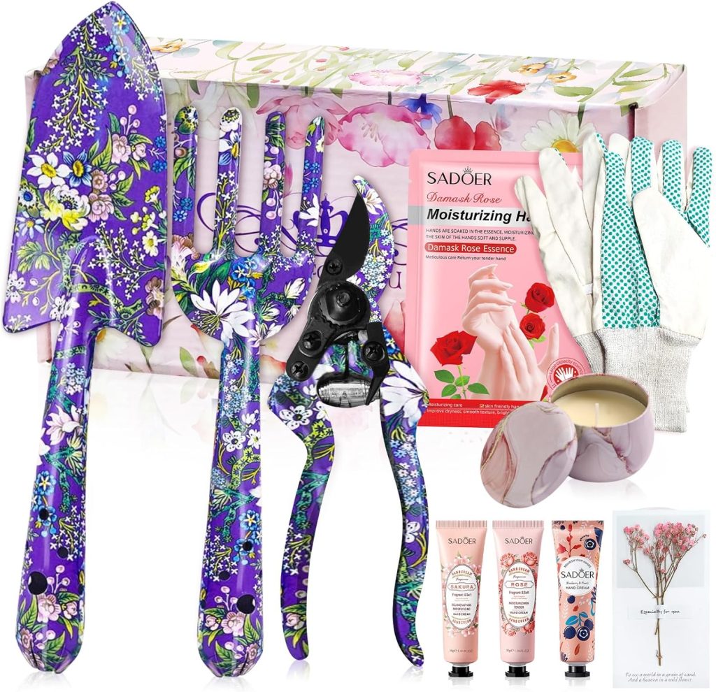Outils Jardinage, 10 Pièces Kit Jardinage Adulte avec Gants, Pelle, Ciseaux, Griffe, Bougies, Crème pour Les Mains, Outil Jardinage à Motifs Floraux avec Une Belle Boîte Cadeau – Le détail qui change tout au quotidien