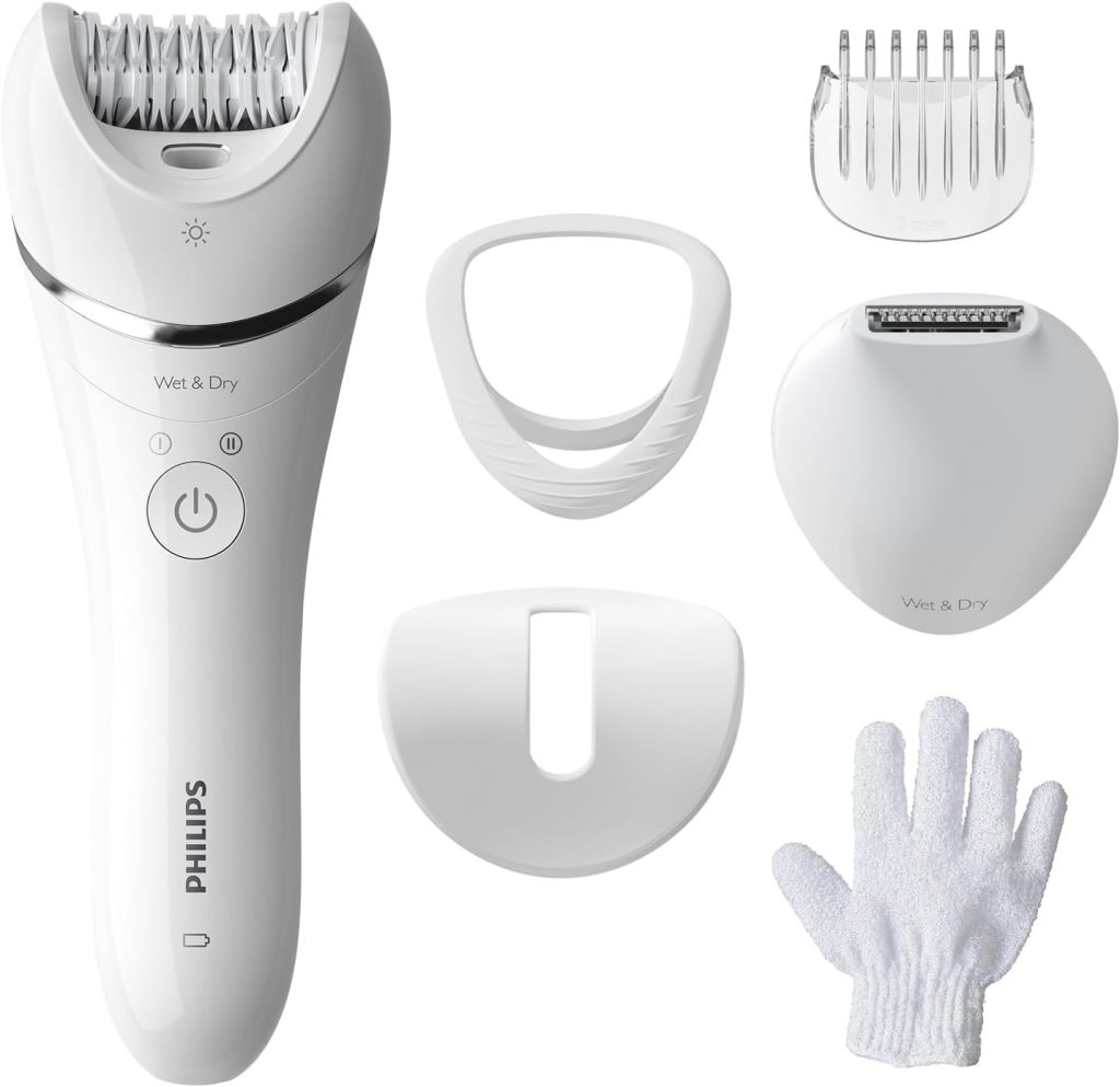 Philips Series 8000, Epilateur Wet & Dry sans fil pour les jambes et le corps, avec 6 accessoires, tondeuse et embout exfoliant pour le corps, (modele BRE715/00) – Le détail qui change tout au quotidien