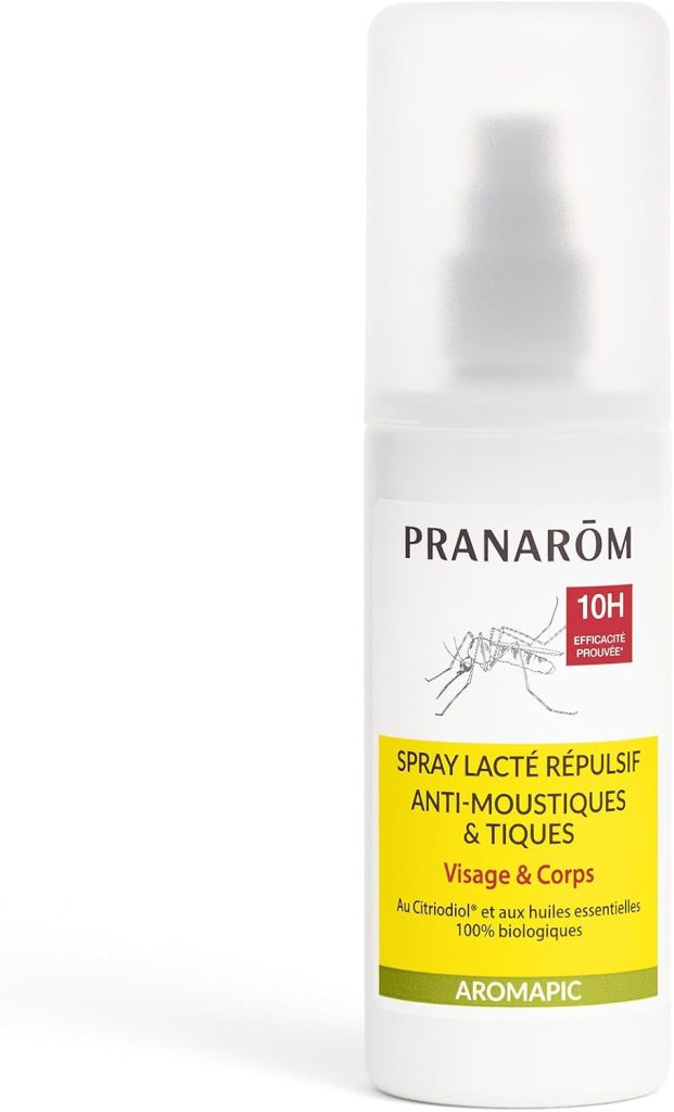 Pranarôm – Aromapic – Spray Lacté Répulsif – Efficace 10 heures – Anti-moustiques et Tiques – Huiles Essentielles 100% BIO – 100 ml – Le détail qui change tout au quotidien