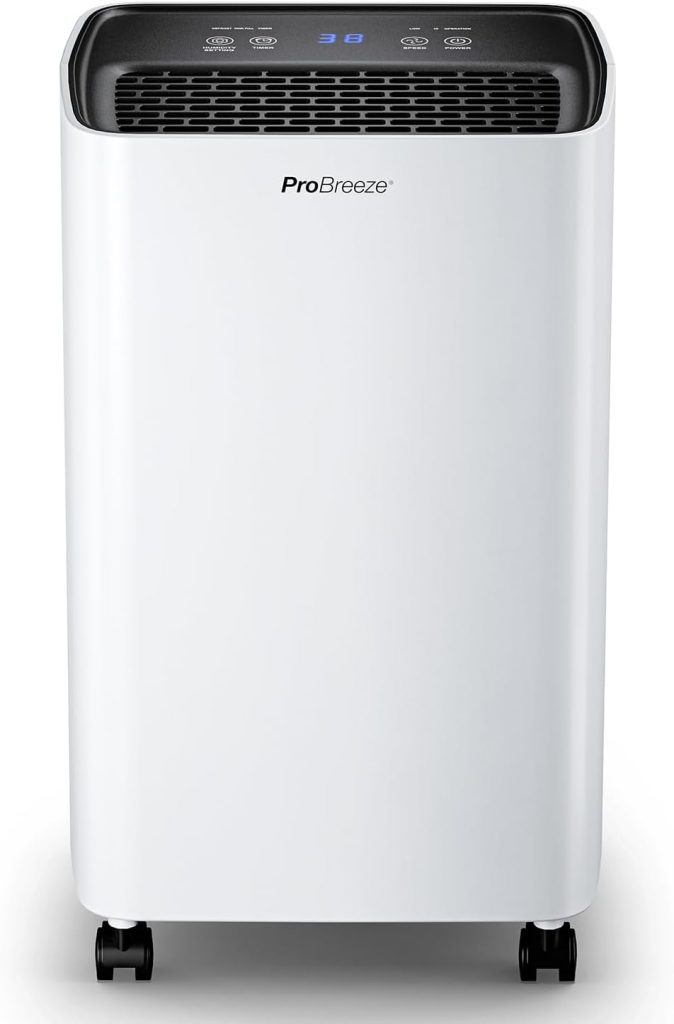Pro Breeze Déshumidificateur d Air 12L/jour, Éliminateur de Moisissure Noire, Absorbeur d’Humidité Automatique, Sèche-linge, Déshumidificateur Compresseur Portable Silencieux, Minuterie 24h – Le détail qui change tout au quotidien