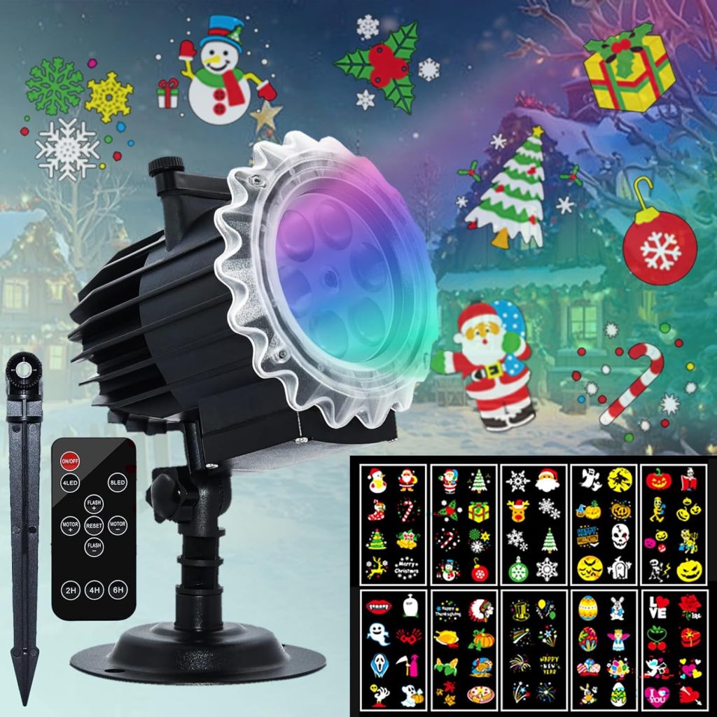 Projecteur Noël Extérieur avec Télécommande, 10 Diapositives HD 80 Motifs avec Minuteur, Lumière LED Étanche Lumière Projecteur Flocon de Neige pour Décoration Noël, Fête, Halloween – Le détail qui change tout au quotidien