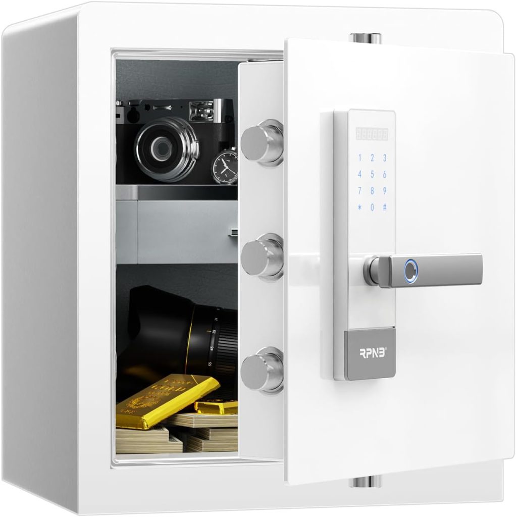 RPNB Coffre-fort de luxe avec boîtier de verrouillage, écran tactile intelligent et empreinte digitale, invite vocale, déverrouillage à une touche, double avertissement, 45 L, blanc – Le détail qui change tout au quotidien