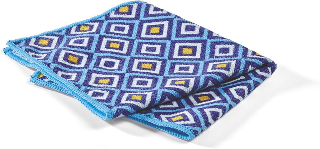 • 100% microfibre : Élimine les traces d’eau et de gras sans détergent, juste avec de l’eau.