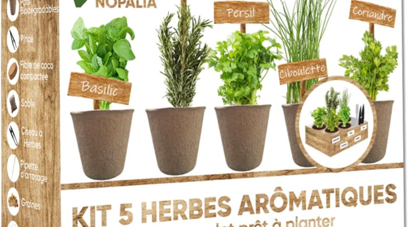 JardinKits prêt-à-pousserKits prêt-à-pousser,JardinPlantes - graines et bulbes NOPALIA® Kit Herbes Aromatiques Bio Prêt à Pousser – 5 Variétés (Basilic, Persil, Ciboulette, Coriandre, Romarin) Pots Biodégradables, Terre & Ebook Recettes – Cadeau Cuisine Noël – Le détail qui change tout au quotidien