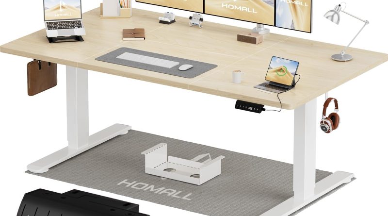 Ameublement et décorationBureauBureauxBureaux et postes de travailBureaux,Cuisine et MaisonCuisine et MaisonMeubles Homall Bureau Assis Debout Électrique 160×80 cm Bureau Réglable en Hauteur avec Fonction Mémoire et Système Anti-Collision, avec Plateau de Gestion des Câbles – Le détail qui change tout au quotidien