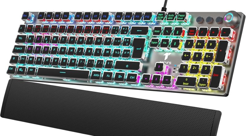 AccessoiresClaviers gamingClaviers gaming,Jeux vidéoJeux vidéoPC TECURS Clavier Gaming Mécanique – Clavier Gamer Programmable avec Repose-Poignet Magnétique, Switchs Rouges, 19 Modes LED, Touches Multimédia, Clavier AZERTY PC/Wins/PS4 – Le détail qui change tout au quotidien