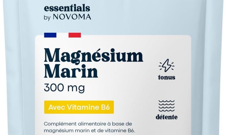 Hygiène et SantéMagnésiumMagnésium,Hygiène et SantéMinérauxVitamines - minéraux et compléments Magnésium Marin + Vitamine B6, Combat la Fatigue et le Stress, Cure de 1 mois, 60 Gélules Végétales, Magnesium Pur 300 mg/jour, Fabriqué en France, Essentials by Novoma – Le détail qui change tout au quotidien