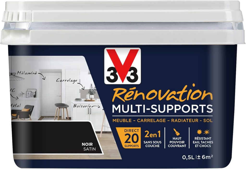V33 Peinture rénovation multi-supports, Noir satin 0,5L – Le détail qui change tout au quotidien