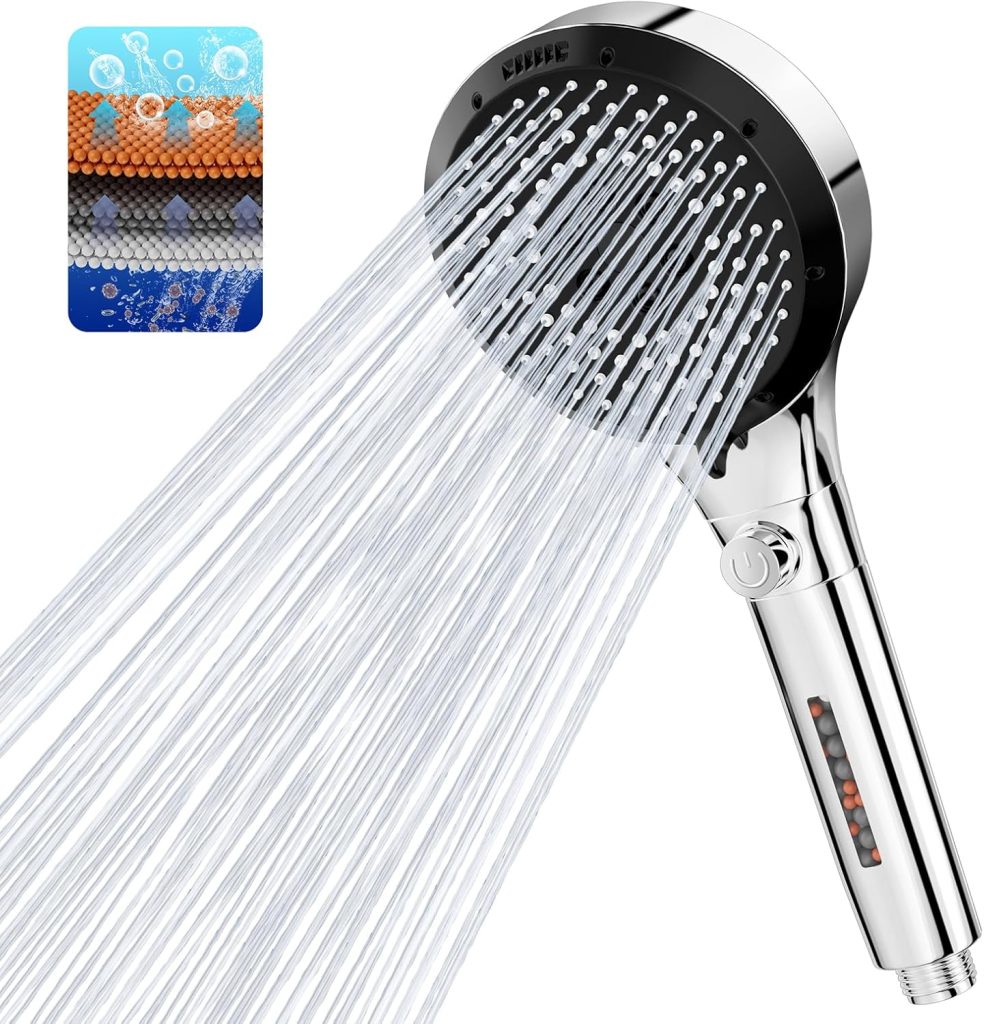 Vinabo Pommeau de Douche Haute Pression, Pommeau Douche Anti Calcaire Avec 6 Types De Jets, Pommeau De Douche Economie Deau Avec Bouton D’ArrêT D’Eau – Argent – Le détail qui change tout au quotidien