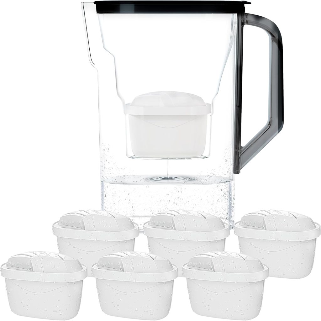 Wessper Carafe Filtrante avec Filtre, Carafe pour porte de réfrigérateur 2,7 L, Cartridges avec Charbon Actif et Résine échangeuse d’ions, Pitcher set set de 6 Filtres – Noir – Le détail qui change tout au quotidien