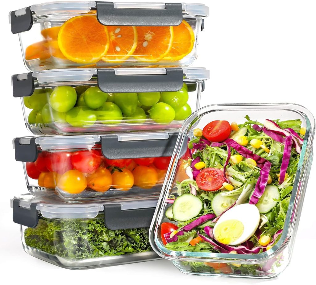 YASHE Lot de 5 récipients en verre avec couvercles, 1040 ml, épais et durables, empilables, hermétiques, sans BPA, pour micro-ondes, four, congélateur et lave-vaisselle – Le détail qui change tout au quotidien