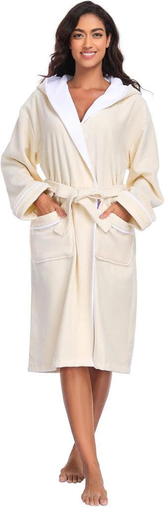 YEAUPE PRO Peignoir de Bain Femme, 100% Coton avec Capuche – Certifié OEKO-TEX® – Robe de Chambre Eponge 2 Poches, Ceinture – Doux, Absorbant et Confort – Le détail qui change tout au quotidien